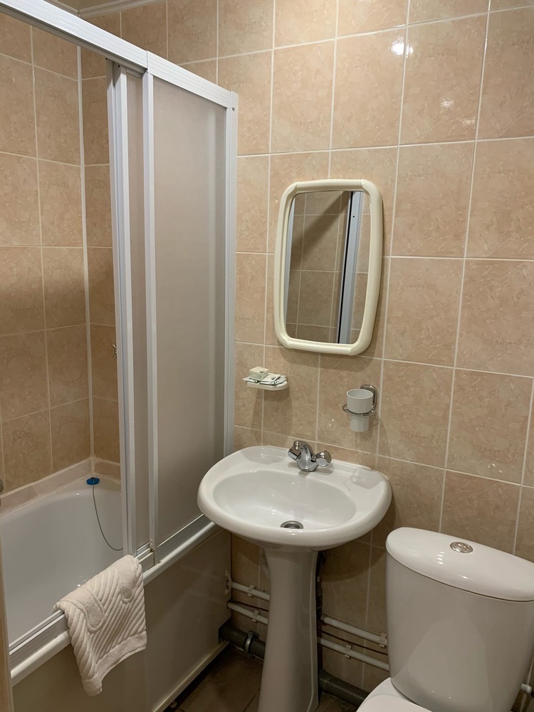 В номере: кровать, стол, стул, тумба, шкаф, телевизор, телефон, холодильник, фен.Санузел с ванной или душевой кабиной.
